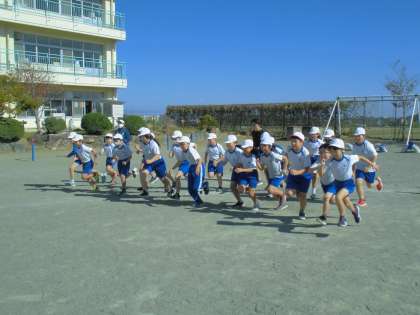 快晴の空の下、2回目のコースの試走をしました。慣れてきたこと、天気がよかったことから、自分の目標タイムを更新する子どもが多かったです。