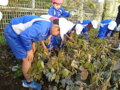 11/20 大豆の収穫 公開日 2023/11/20 更新日 2023/11/20 できごと 3年生は、日野小学校の畑で大豆の収穫を体験させていただきました。 収穫したたくさんの大豆を使って、日野小学校のお友だちと一緒に「とうふづくり」を行います。 また、日野小学校の図書室で本を読んだり、一緒にドッヂボールをしたりして交流を深めました。 ありがとうございました。