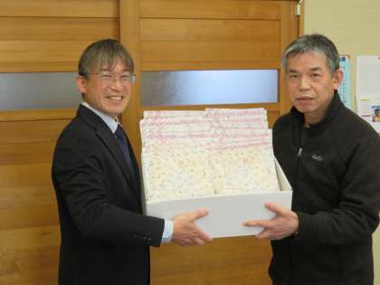 6年生の学級委員長と関根校長でいただきました。ありがとうございました。