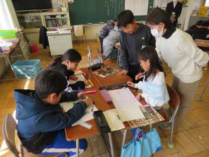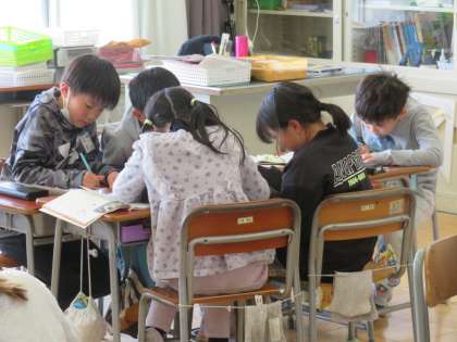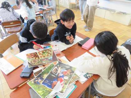 3/13 授業の様子 公開日 2024/03/13 更新日 2024/03/13 できごと 3年生は、国語「わたしたちの学校じまん」で、伝えたいことを理由をあげて話す学習に取り組んでいます。 3年生で思い出に残ったことを、2年生に分かりやすく伝えるために、グループで話し合っていました。 カイコを育てたこと、昆虫の森に遠足に行ったこと・・・など、写真を手がかりに、発表原稿を作っていました。