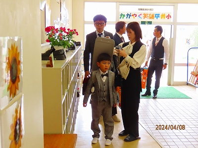 今年度は、校庭の桜も花も満開で、入学を祝ってくれていました。