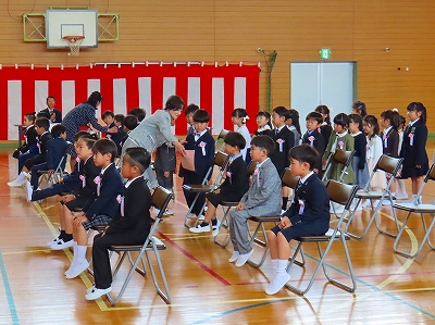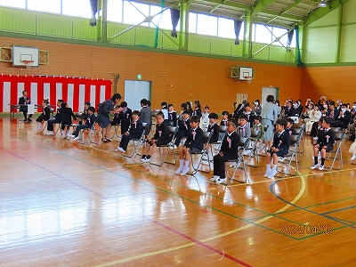 1組、2組と左右に分かれて、自分の椅子にすわります。