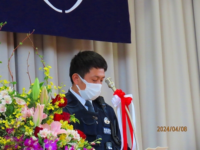 校長式辞、PTA会長様のご祝辞、式後には警察から話もありました。