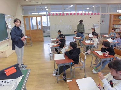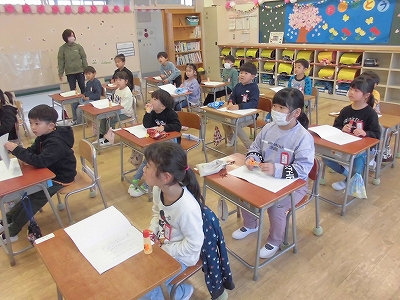 始まったばかり、1年生の教室のようすです。
