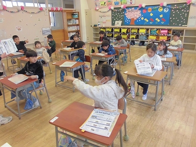 始まったばかり、1年生の教室のようすです。