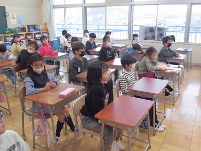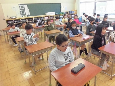 始まったばかりです。姿勢よく担任の先生の話を聞きます。