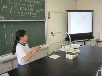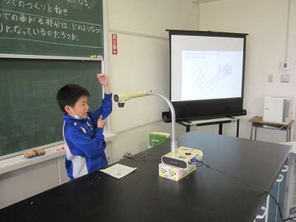 うでの曲がる部分はどのようなつくりになっているのか発表し合いました。