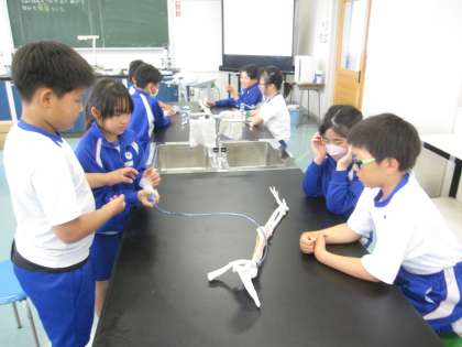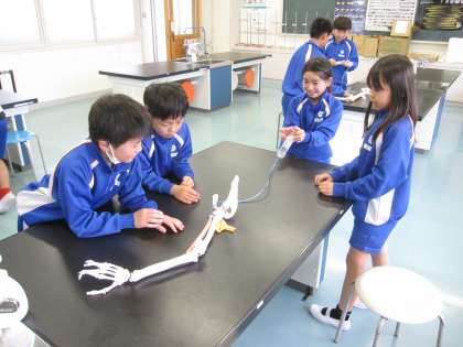 4月23日(火)4年生 理科 その2 公開日 2024/04/23 更新日 2024/04/23 できごと 腕は、骨をつなぐようについている筋肉が、ちぢんだりゆるんだりすることで、曲げたりのばしたりできることがわかりました。
