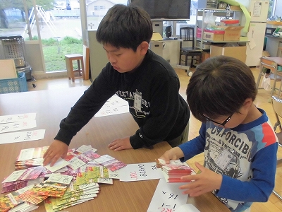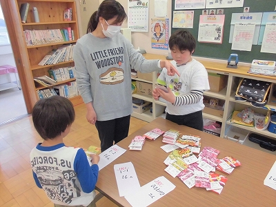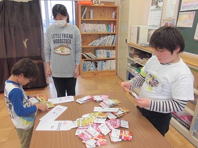 JRC委員会として、花の種の袋を数えて、クラス毎に分けます。