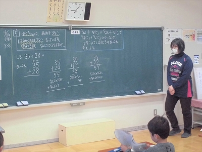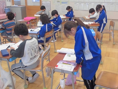 めあてが書き終わると、立って、そのめあてを読み上げて確認します。