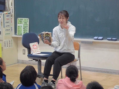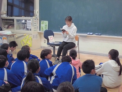 6年生は、担任がお勧めの本を熱く語り、そして読み聞かせました。