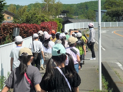 町しらべで校外へ出発です。平井小通りを南下していきます。