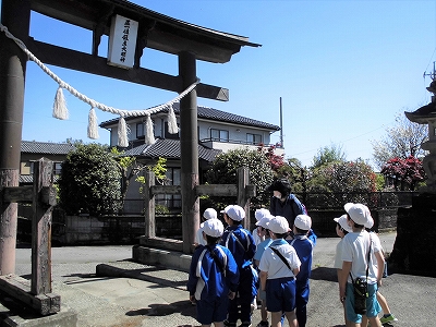 手を挙げて横断歩道を渡り、道祖神を通り、飯玉神社へ到着です。