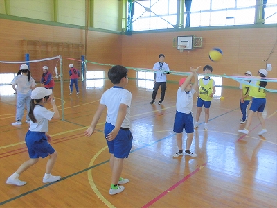 ソフトバレーボールで、チームごとに盛り上がっていました。