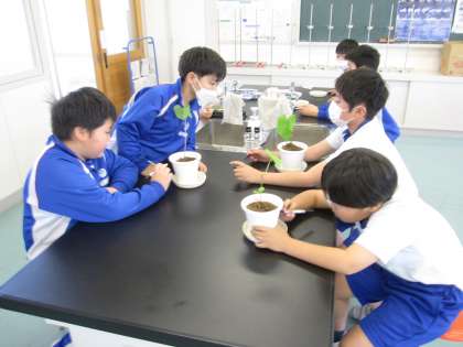 植物が成長する条件を調べる実験をセットしました。