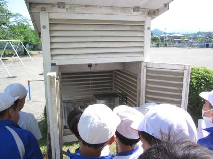 5月10日(金)4年生 理科 公開日 2024/05/10 更新日 2024/05/10 できごと 気温の計り方の学習をしました。 百葉箱の中の自記温度計の記録を観察しました。「こんなに変わってる!」という声が聞こえました。