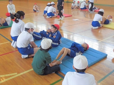続いて「上体起こし」も、6年生が優しく面倒を見てくれました。