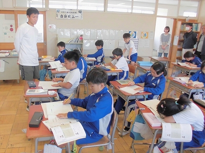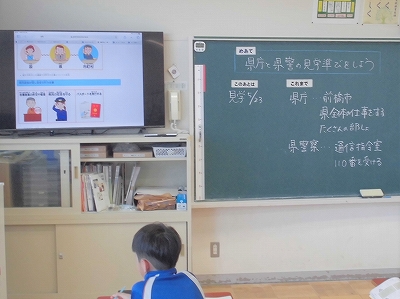 県庁や県警への社会科見学の事前学習を、日野小と合同で行いました。