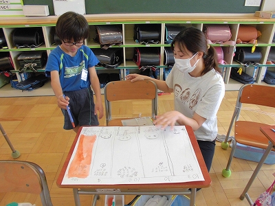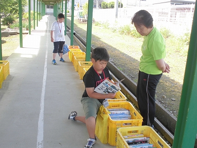 月に一度の巡回図書でじっくりと本を選びます。交流学級の図工です。