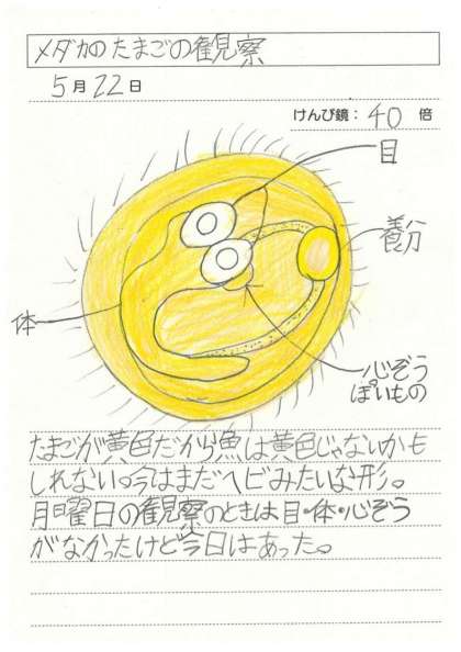 目や体がわかるようになりました。心臓が動いて血管の中を血液が流れているのが見えました。