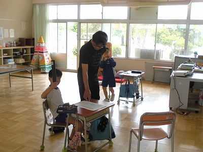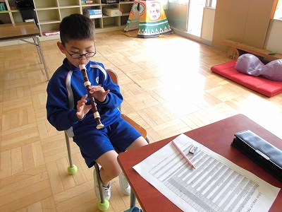 自分の好きなこと、できることを確認するため、笛を吹きます。