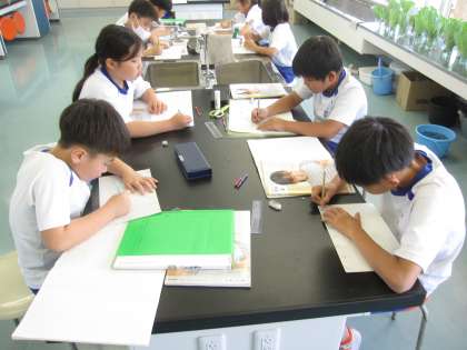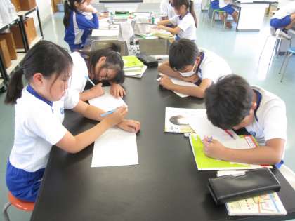 記録温度計のグラフを見て、天気の変化を読み取りました。