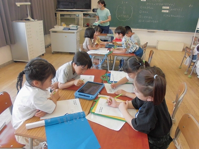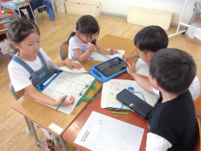 教室に戻り、撮った写真を見ながら、班ごとにまとめていきます。