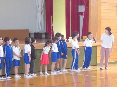 4月・5月に誕生日の児童は自己紹介し、みんなで歌のプレゼントです。