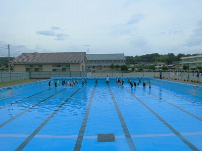 1年生用にプールに水を少しだけ張って、水慣れをしました。