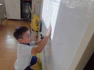 映し出されている方眼に、定規でしっかり棒グラフを書き込みます。
