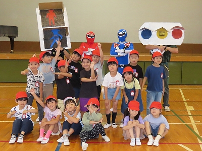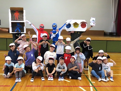 5月28日(火)1、2年生 交通安全教室 その3 公開日 2024/05/28 更新日 2024/05/28 できごと 最後に、交通安全戦隊と記念写真を撮りました。ヤマト運輸のみなさん、本当にありがとうございました。