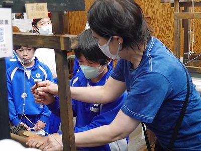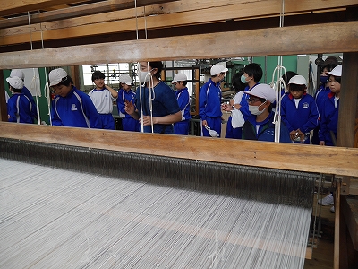 まずは、桐生の織物参考館「紫」で説明を受けて、その体験をしました。