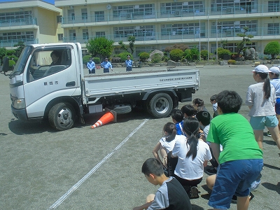 藤岡警察、交番の警察官、交通指導員、市役所地域安全課の方々のご協力のもと、高学年向けに交通安全教室を行いました。