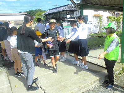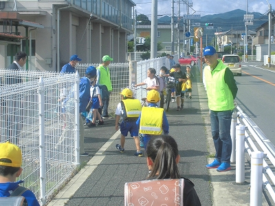 中学生や民生児童委員さんと一緒に、朝のあいさつ運動です。