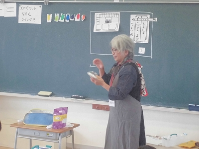 講師の方をお招きして「絵の具講習会」です。机の配置まで教わります。