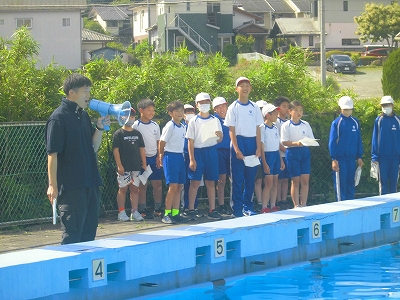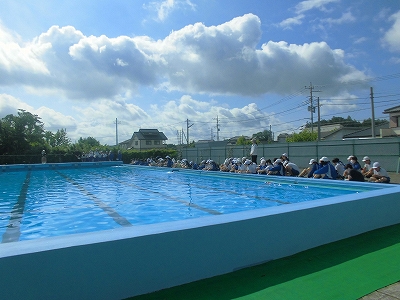 委員会の子どもたちの進行で、プール開きを行いました。平井小のこのプールも今年度限りとなります。