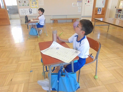 漢字テストです。制限時間いっぱいまで頑張りました!