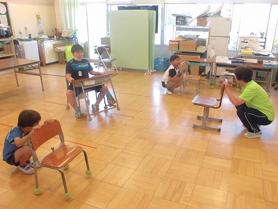 一日の始まりに、しっかりと身体をほぐす準備運動をしておきます。