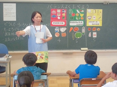 栄養教諭さんが、食事のバランスなど食に関する授業をしてくれました。