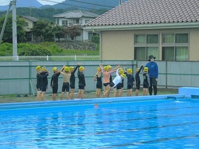しっかりとバディを大きな声で確認し合いながら、水泳の授業です。