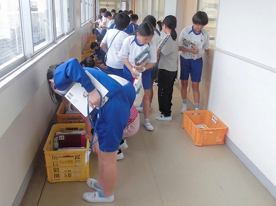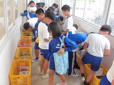 月に一度の巡回文庫です。あいにくの天気で、家庭科室で手続きです。