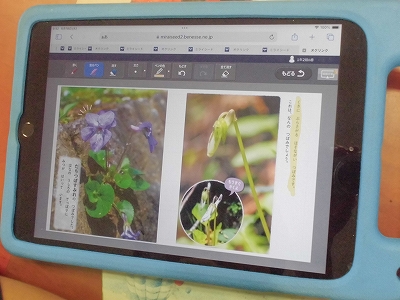 映し出された教科書に、タブレット上で蛍光マーカーを引きます。