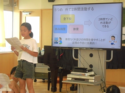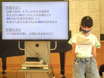 調べたことを、保健委員の子どもたちが堂々と発表しました。