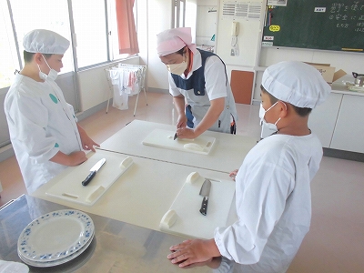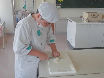 育てた野菜を包丁で切ります。とても上手に切れていますね。