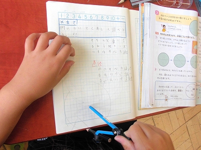 円の「半径」と「直径」の関係を調べます。初めてのコンパスも大活躍!