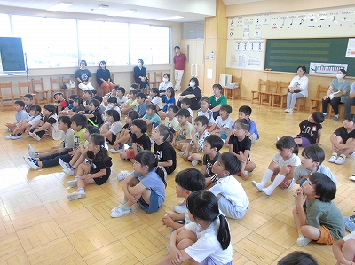 7月10日(水)1、2年生 情報モラル教育 公開日 2024/07/10 更新日 2024/07/10 できごと 1、2年生合同で、低学年向けの情報モラル教育です。ソフトバンクより、専門の講師の方が教えに来てくださいました。