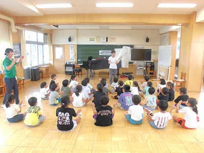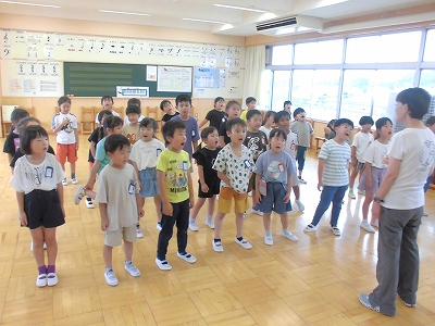 合同で音楽室の音楽です。まずは声を合わせて元気いっぱい歌いました。