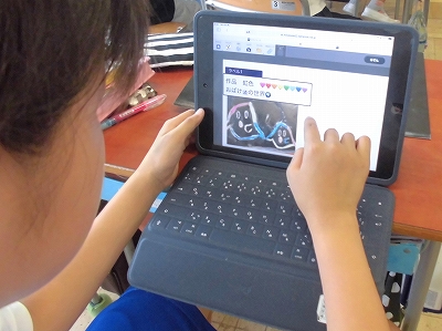 7月11日(木)5年生 図工 公開日 2024/07/11 更新日 2024/07/11 できごと 自分の作品にタイトルを付けて、画像で送信すると一斉に鑑賞し合えます。早く終わると、夏休みのポスターの下書きに取りかかります。