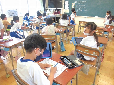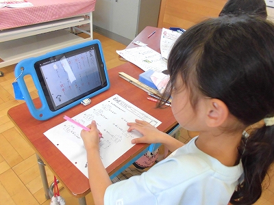 まとめのプリント学習です。タブレットの解答で各自答え合わせです。