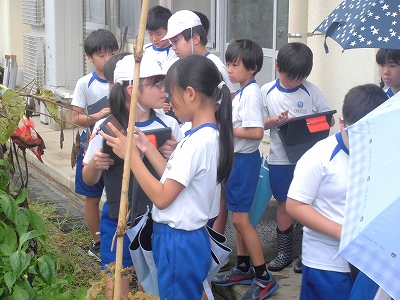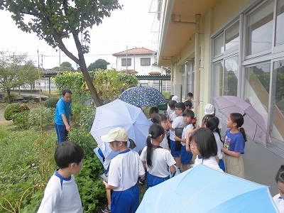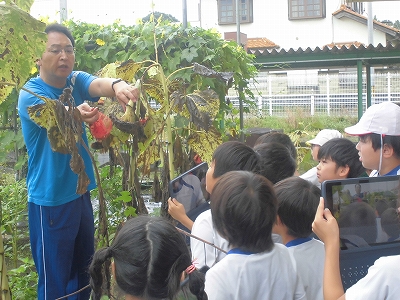 ヒマワリの種など、屋外で植物の成長について観察や記録をしました。